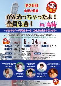 2020年6月14日(日)希望の祭典! 第25回 がん治っちゃったよ!全員集合! in 高崎