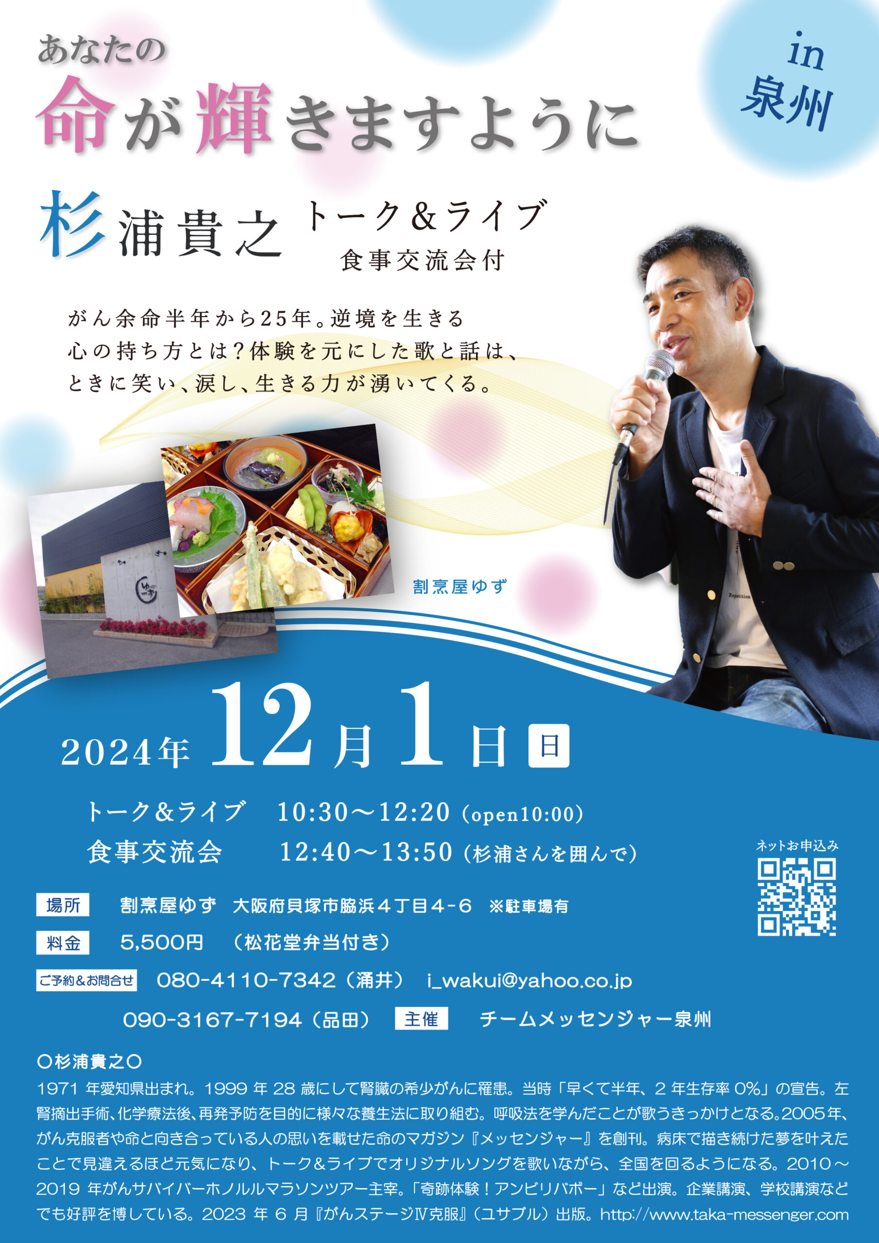 日記12月1日(日)杉浦貴之トーク&ライブ in 泉州(貝塚市)@割烹屋ゆず