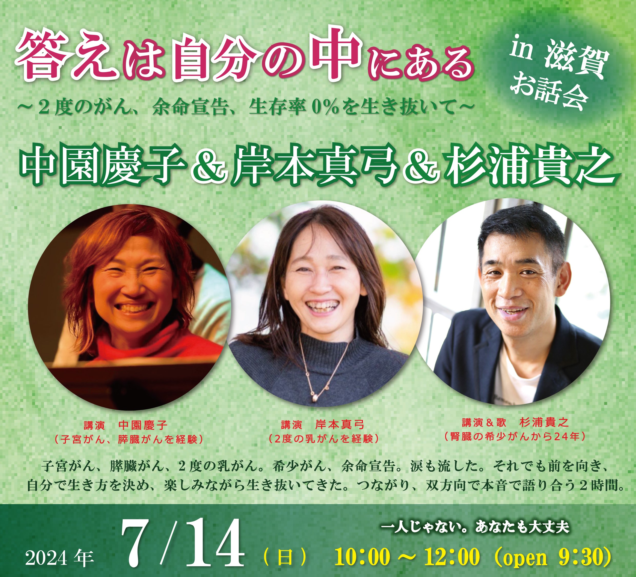 日記7月14日(日)中園慶子&岸本真弓&杉浦貴之 お話会 in 大津