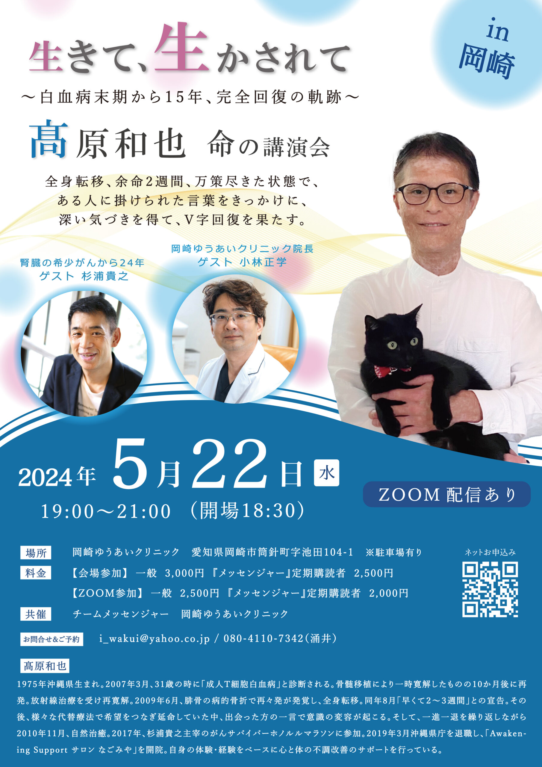 日記5月22日(水)は、がんステージⅣ生還者の講演会です!【岡崎会場&ZOOM&アーカイブ】