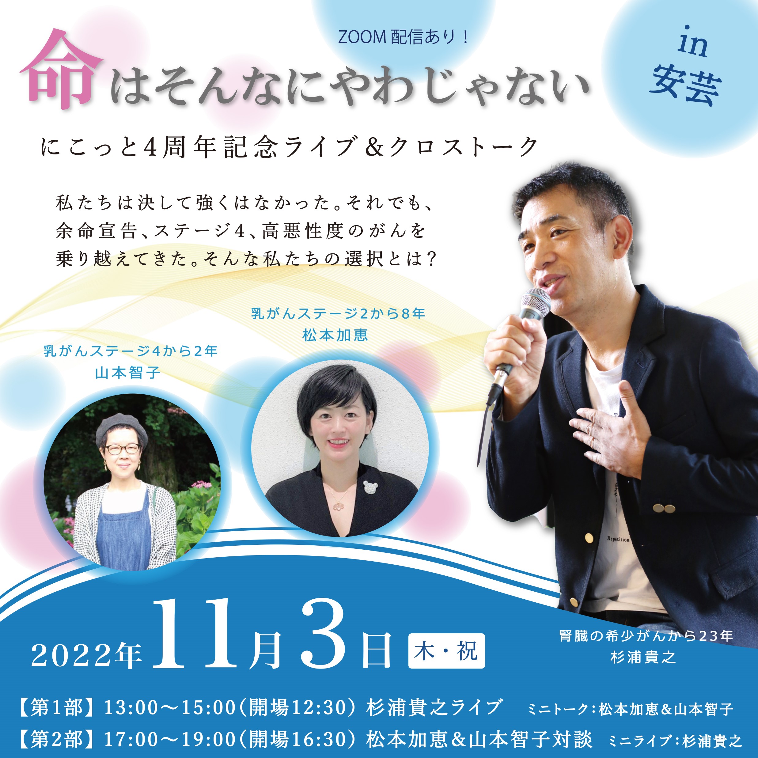 日記【会場&ZOOM&アーカイブ配信】11月3日(木・祝)杉浦貴之&松本加恵&山本智子 ライブ&クロストーク in 安芸