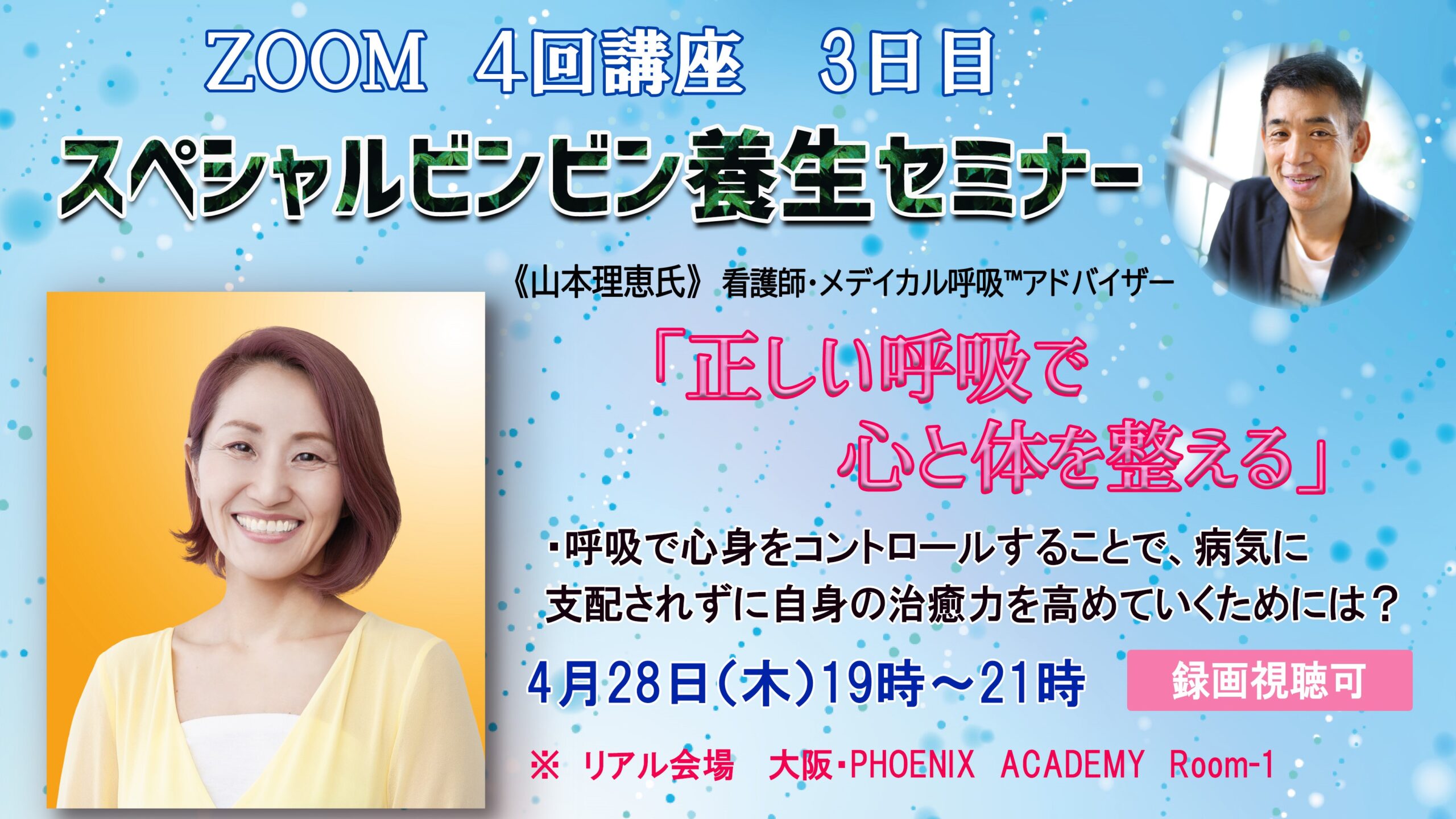 日記ZOOM&会場「正しい呼吸で心と体を整える」山本理恵氏 スペシャルビンビン養生セミナー《体の養生編》