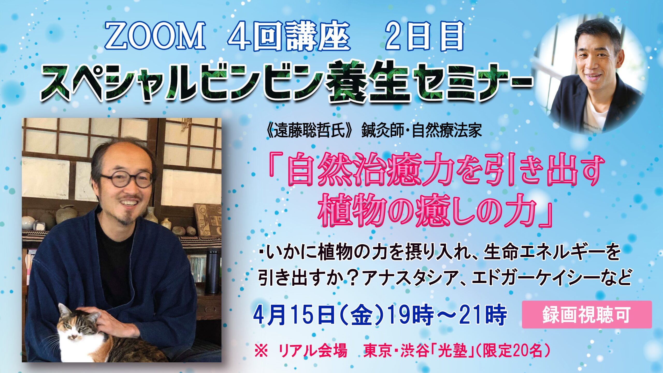 日記ZOOM&会場「自然治癒力を引き出す、植物の癒しの力」遠藤聡哲氏 スペシャルビンビン養生セミナー《体の養生編》