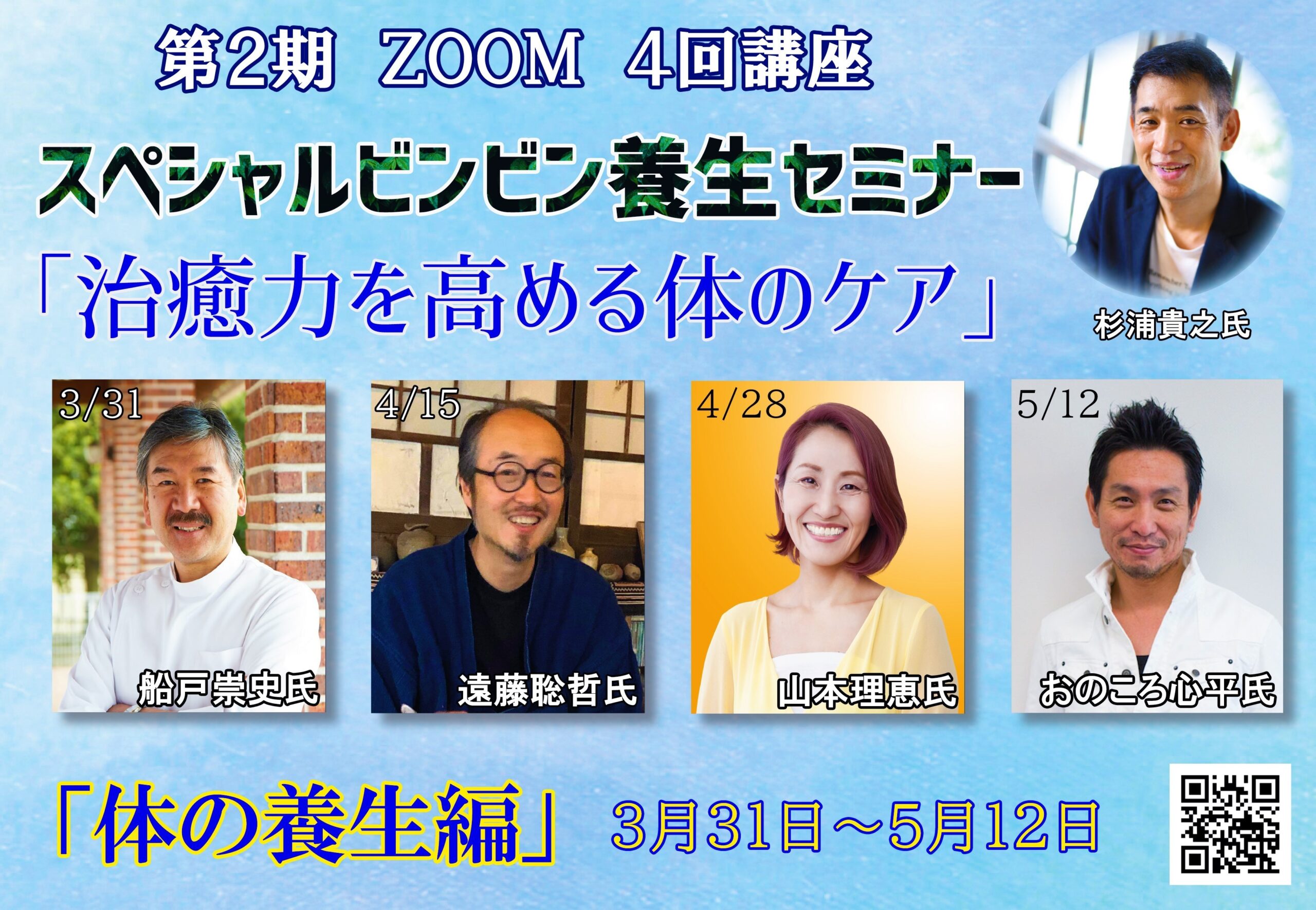 《体の養生編》第2期オンライン・スペシャルビンビン養生セミナー4回講座・3月31日~5月12日