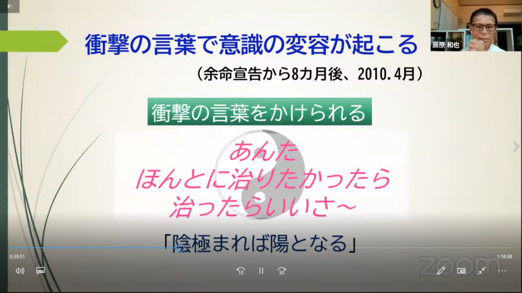 高原さんのがんは治療の手立てがなくなり、最後は意識の変化、自然療法のみで寛解まで至っていますが、