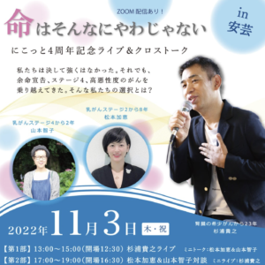 【会場&ZOOM&アーカイブ配信】11月3日(木・祝)杉浦貴之&松本加恵&山本智子 ライブ&クロストーク in 安芸