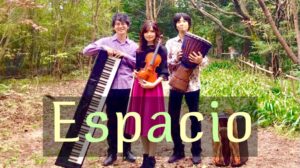 2020年8月結成のインストバンド「Espacio」。ピアノ鎌田浩史、ヴァイオリン加川由梨、パーカッションKenzoによるインストユニット。
