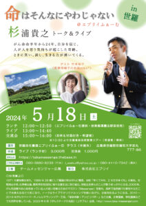 5月18日(土)杉浦貴之トーク&ライブ in 世羅(広島県) @エブリイふぁーむ