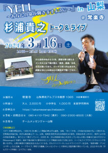 2024年3月16日、17日は、山梨、静岡で杉浦貴之トーク&ライブです!