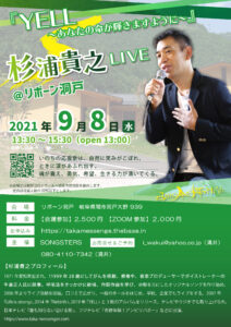 リアル&オンライン!9月8日(水)杉浦貴之ライブ@リボーン洞戸