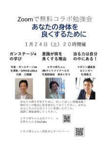 1月24日(土)20時より、無料ZOOM講演会をします。