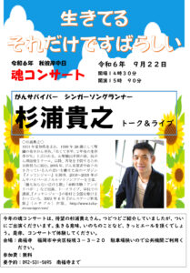 9月22日(日)杉浦貴之・魂コンサートin福岡@南福寺