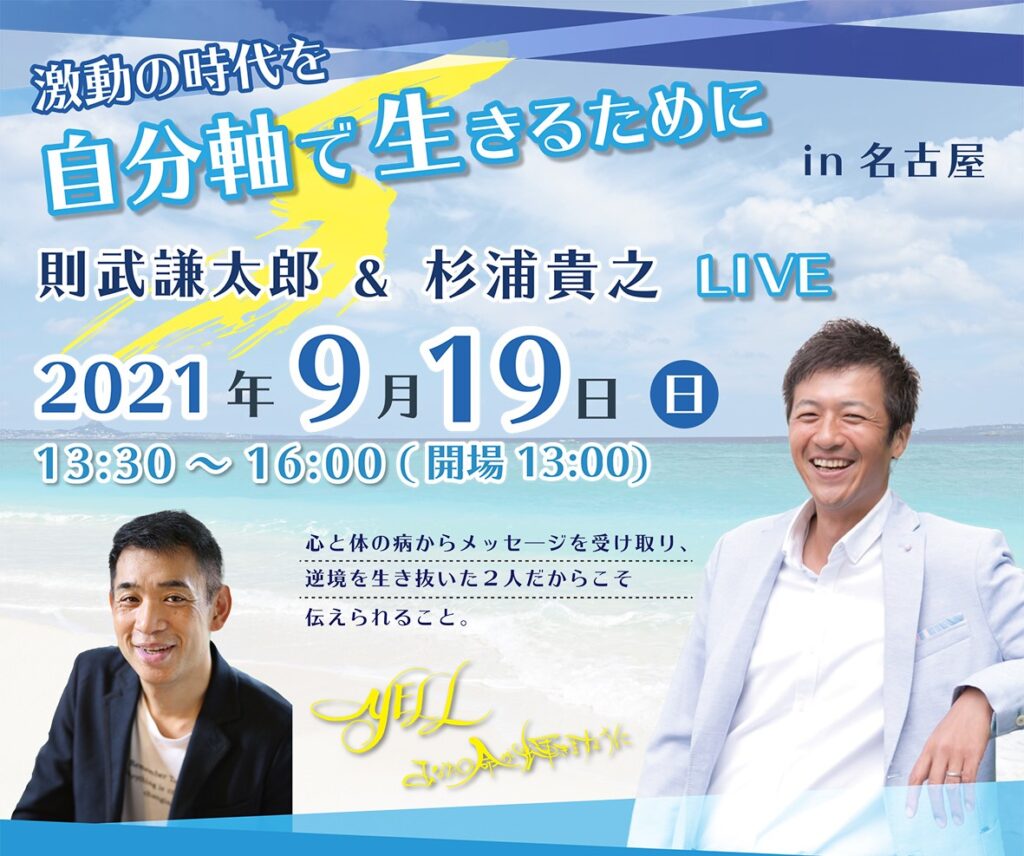 リアル&オンライン!『激動の時代を自分軸で生きるために』 9 … 続きを読む リアル&オンライン!9月19日(日)則武謙太郎&杉浦貴之 トーク&ライブ in 名古屋