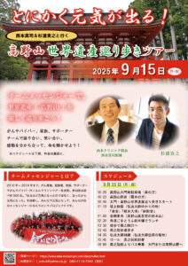 【残り4名】9月15日(月・祝)『とにかく元気が出る!西本真司&杉浦貴之と行く、高野山世界遺産巡り歩きツアー』