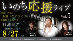 無料Youtube配信!8月27日(火)「いのち応援ライブ Vol.5」【病院、病室にオンラインライブを届けたい!音楽で希望を、生きる力を!】