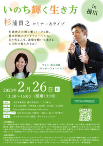 【会場&ZOOM&アーカイブ配信】2月26日(日)『いのち輝く生き方』杉浦貴之セミナー&ライブ in 掛川