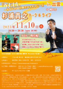 11月10,11日(金,土)杉浦貴之トーク&ライブは山陰(出雲、米子)2日間です!