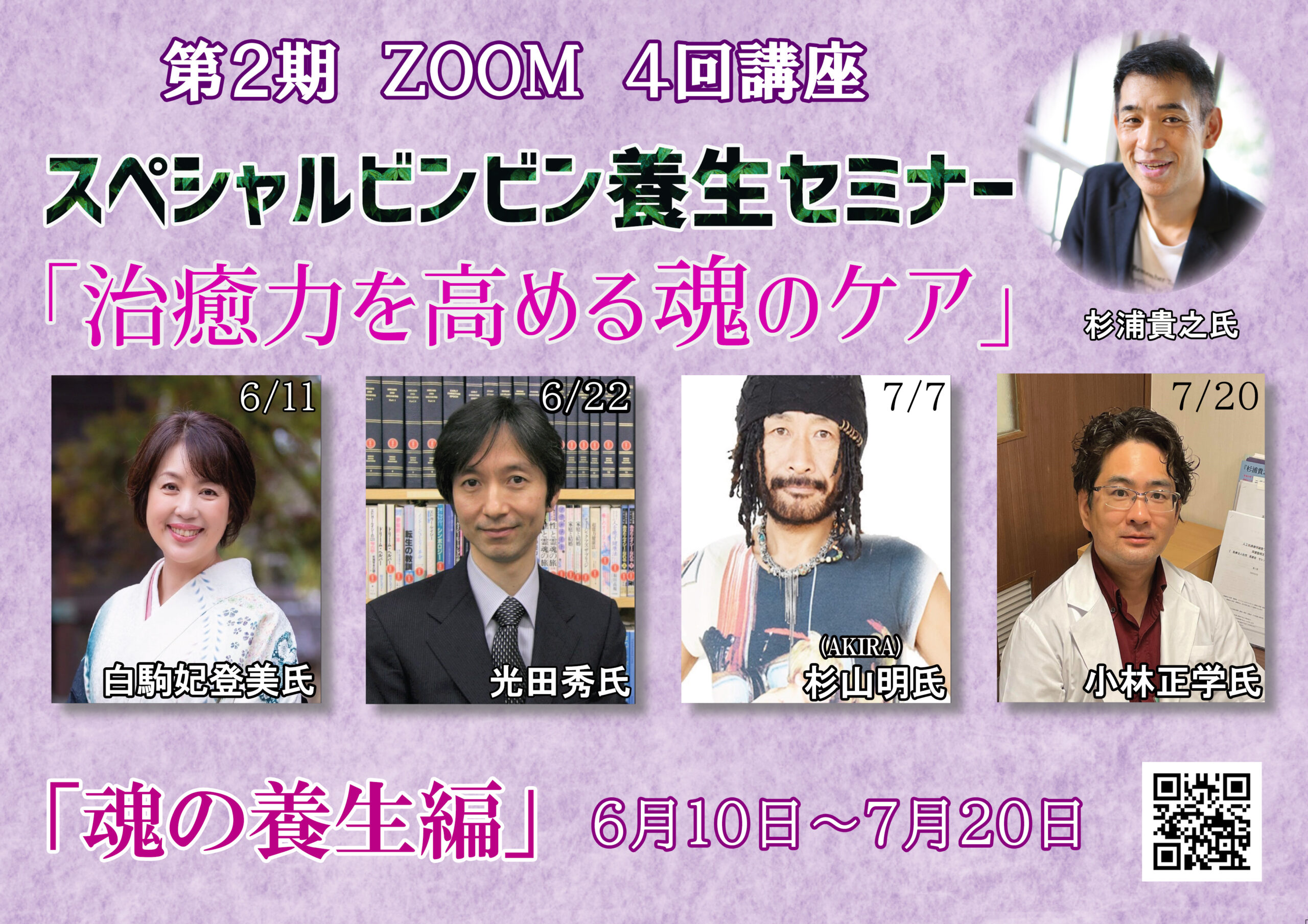 第2期《魂の養生編・講師》 6月11日、22日、7月7日、20日 19時~21時