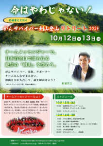 チームメッセンジャー『命はやわじゃない!』10月12日(土)、13日(日)「杉浦貴之と行く、がんサバイバー剣山登山リトリート2024」