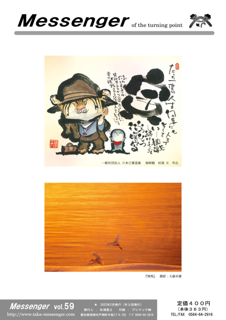 ☆ 「表紙裏の書」は一般社団法人 日本己書道場総師範・杉浦正さんの作品