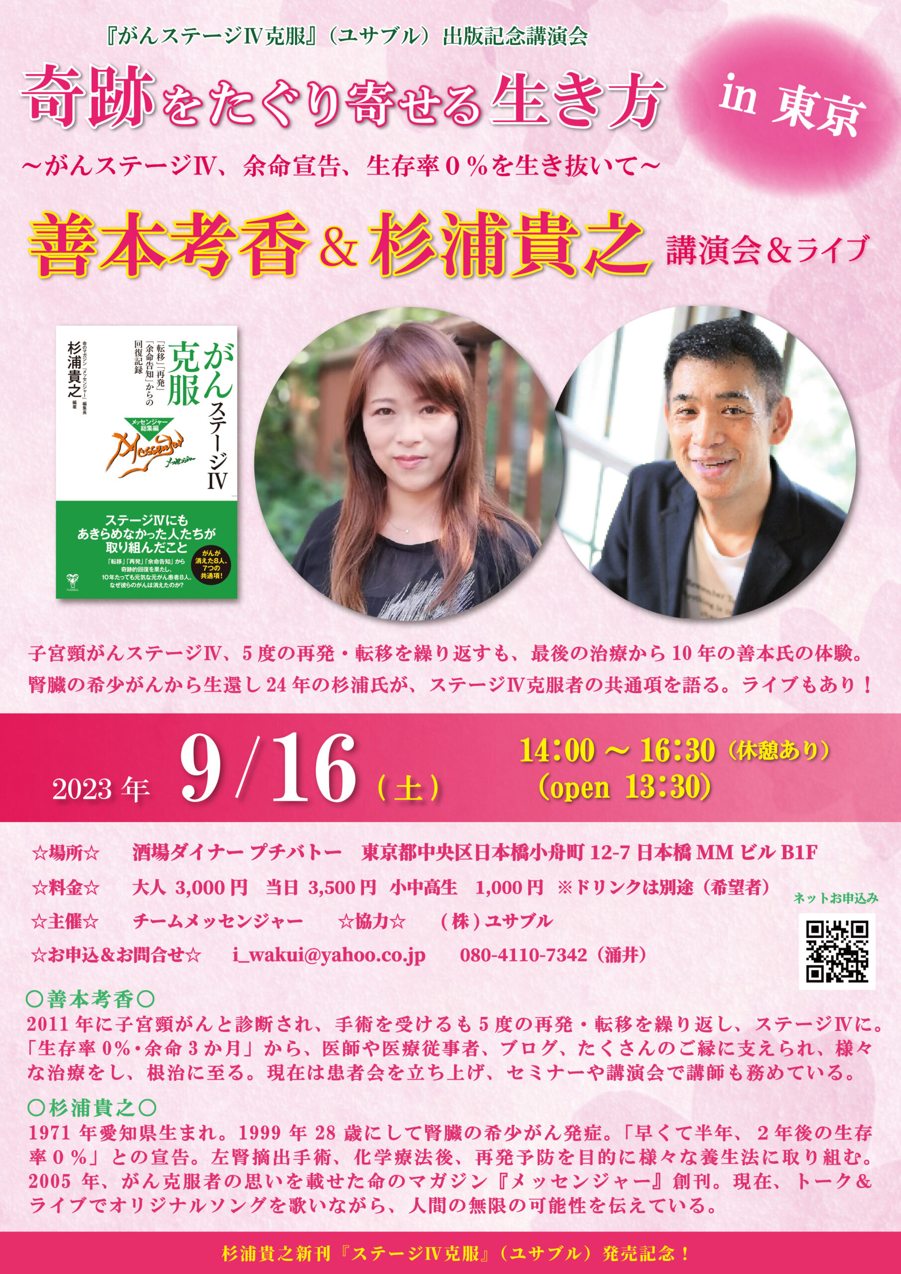 日記【会場&ZOOM&アーカイブ】出版記念!9月16日(土)善本考香&杉浦貴之 講演会&ライブ in 東京