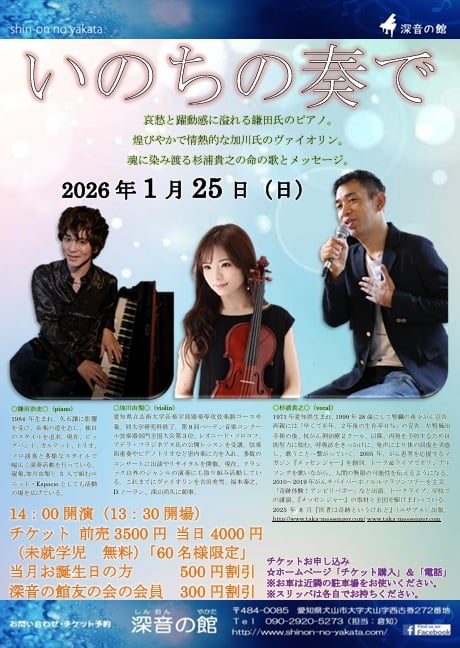 日記2026年1月24日(土)名古屋でお話会、25日(日)犬山でライブ&トークあります!