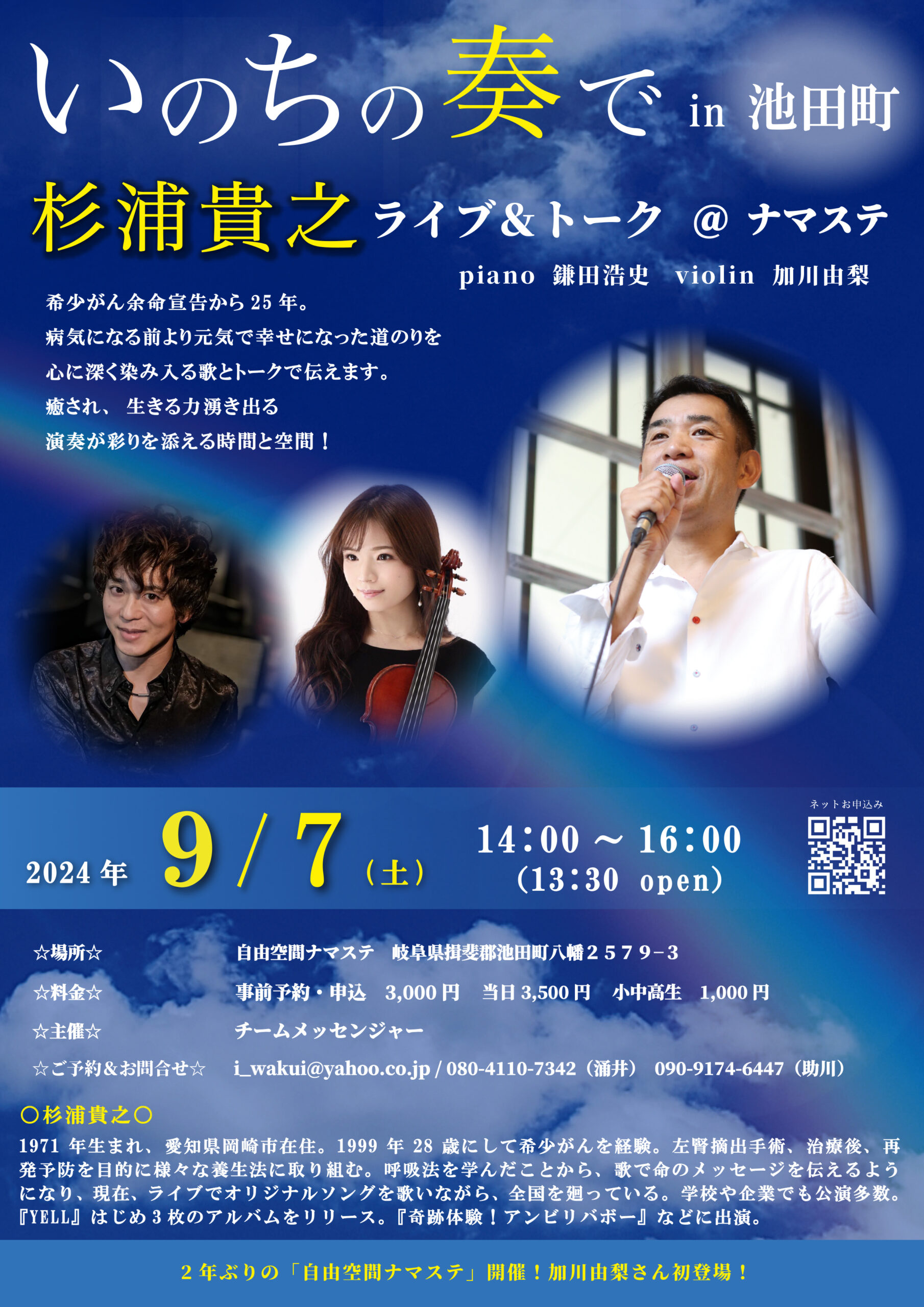 日記9月7日(土)杉浦貴之ライブ&トーク in 池田町(岐阜県)@自由空間ナマステ