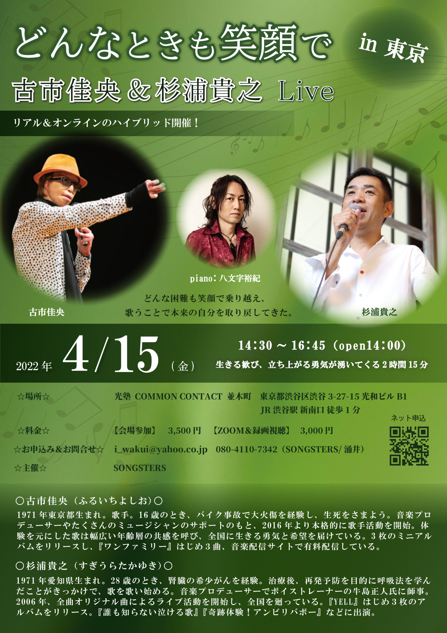 東京開催!リアル&オンライン!4月15日(金)「どんなときも笑顔で」古市佳央&杉浦貴之 Live in 東京