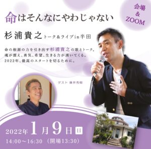 会場&ZOOM配信!2022年1月9日(日)杉浦貴之トーク&ライブ@藤井治療院 in 半田