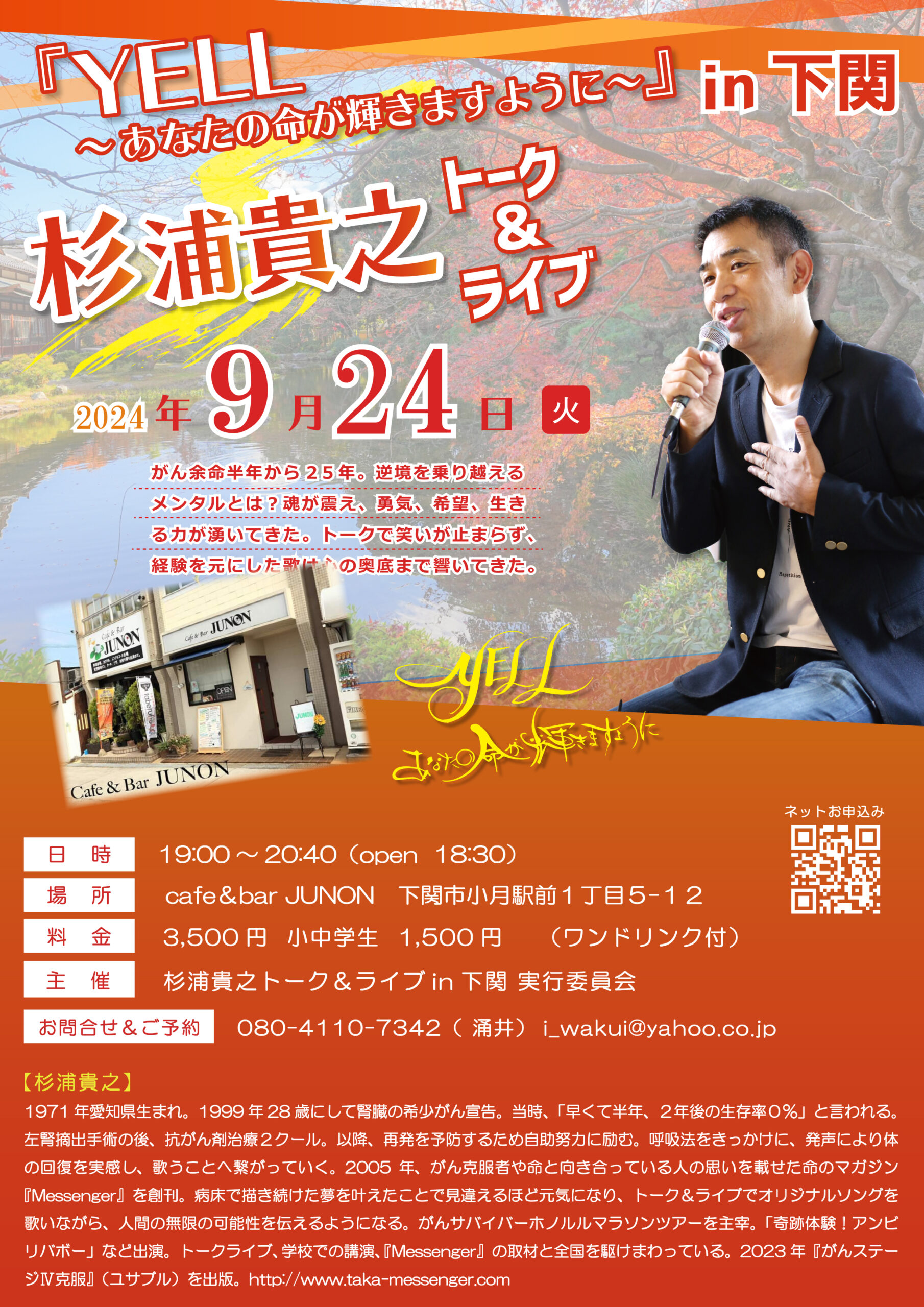 9月22日(日)福岡県福岡市、24日(火)山口県下関市でトーク&ライブです!