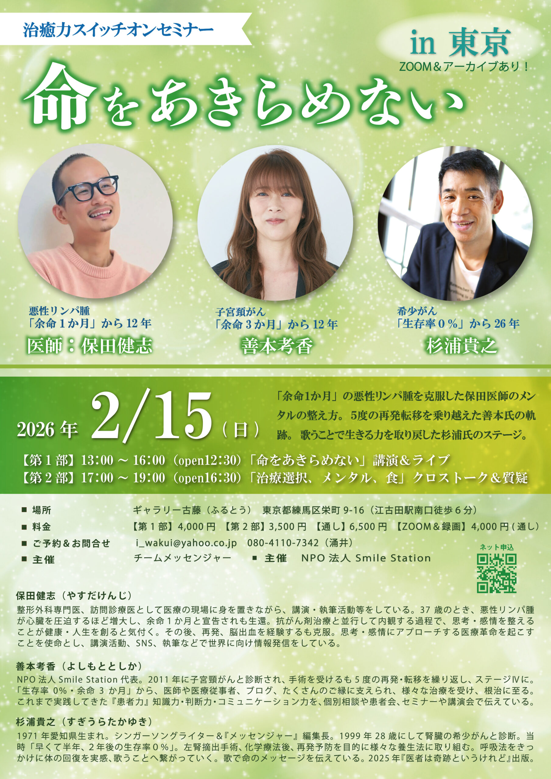 🍃2月15日(日)善本考香&保田健志医師&杉浦貴之 in 東京