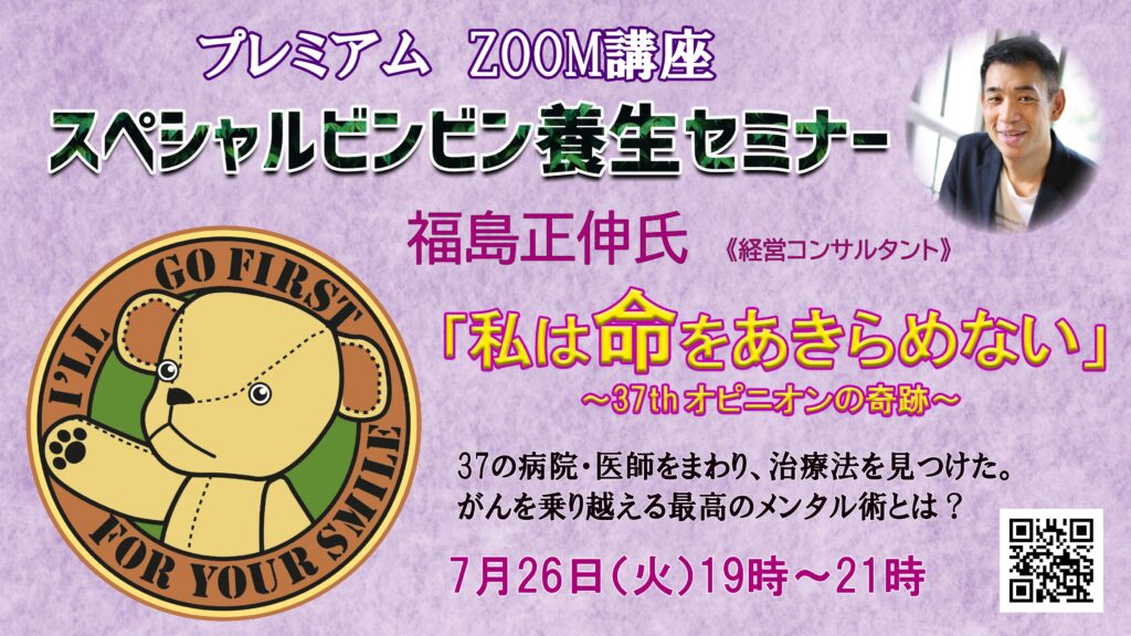 ZOOM講座 福島正伸氏 プレミアムビンビン養生セミナー《魂の養生編》