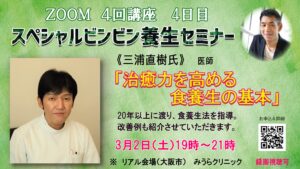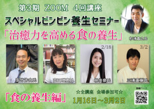 《食の養生編》第3期オンライン・スペシャルビンビン養生セミナー4回講座・1/16,2/3,2/28(録画)3/2